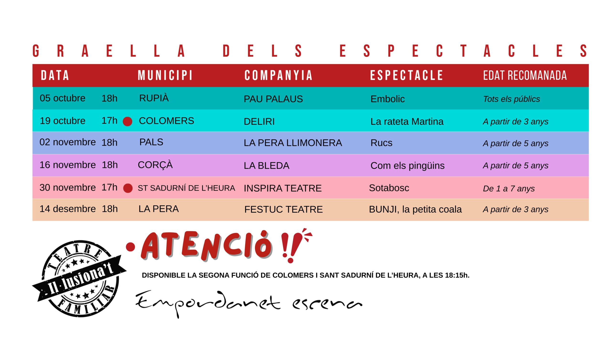 Descobriu la programació completa de la temporada de tardor i deixeu-vos seduir pel teatre. Gràcies per la vostra fidelitat i per fer créixer cada dia la comunitat d’Empordanet Escena!